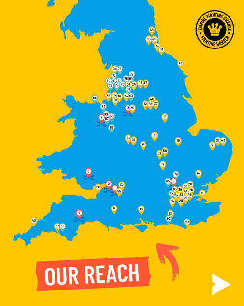 We trained 31 organisations and 129 practitioners to deliver our proven model locally. With support from England Boxing and Matchroom Boxing, we focused on boxing clubs, untapped community hubs with huge potential for change.